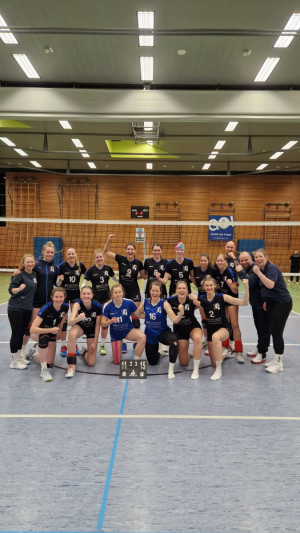 Nachdem wir unsere routinemäßigen Startschwierigkeiten überwunden hatten, konnten wir den ersten Satz mit 25:23 für uns entscheiden. Kopf an Kopf ging es im zweiten Satz weiter. Die SG Erlangen gewann diesen, nicht zuletzt auf Grund von sehr starken Aufschlägen, mit 25:22. Leider mussten wir dann verletzungsbedingt zu Beginn des 3. Satzes auf unsere Außenangreiferin Nora verzichten. Glücklicherweise konnte aber schnell Entwarnung ausgesprochen werden. Sie wird schon bald wieder auf dem Feld zu sehen sein. Auch unsere Gegnerinnen blieben leider nicht vom Verletzungspech verschont. Die starke Nr. 8, Lara Bamberger, musste in Satz 4 ausgewechselt werden. Wir wünschen alles Gute und schnelle Genesung! Nach fast 2 Stunden voller spannender Ballwechsel sollte der Tie Break dann entscheiden. Mit Unterstützung unseres Publikums und vollem Fokus auf Sieg konnten wir uns schlussendlich mit 15:11 die 2 Punkte sichern. Die MVP Medaille sicherten sich sich Maria Freitag (DSSV) und Lara Bamberger (SG Erlangen).