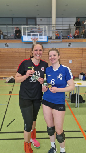 Für die tollen und konstanten Leistungen werden unsere Außen / Annahmespielerinnen Marit und Maike jeweils mit der goldenen MVP Medaille ausgezeichnet und wir bekommen fünf Punkte für die Tabelle dazu.